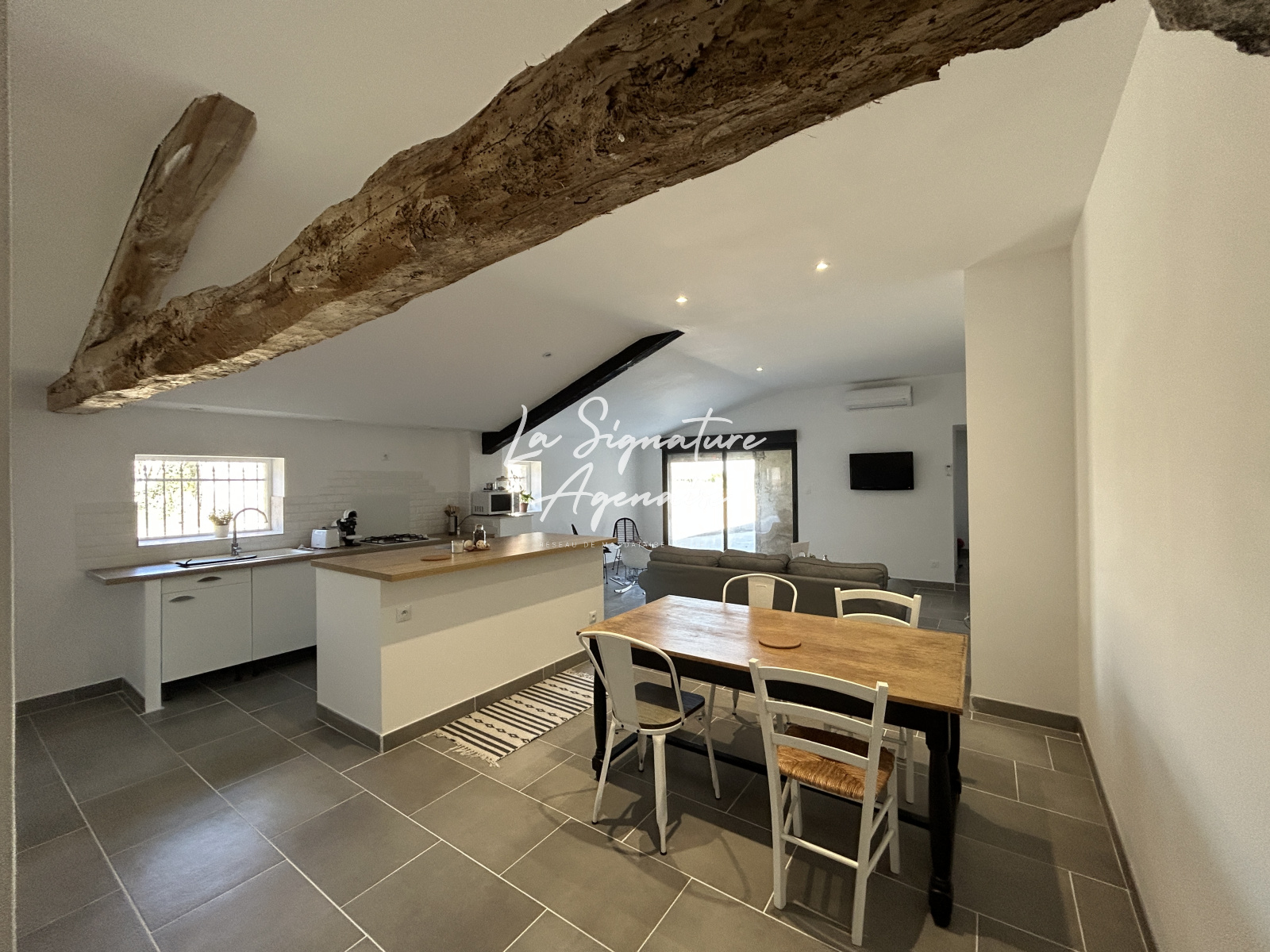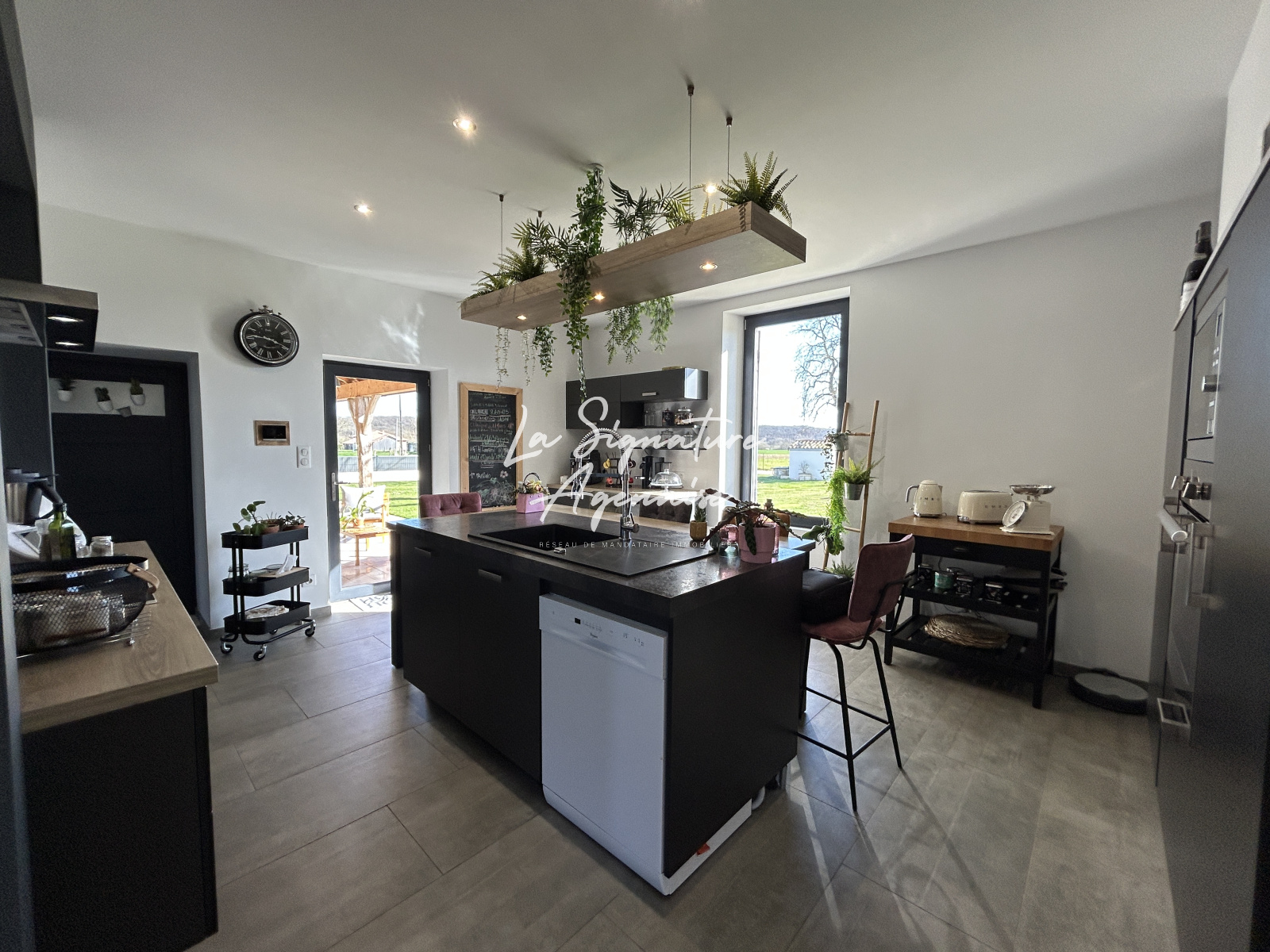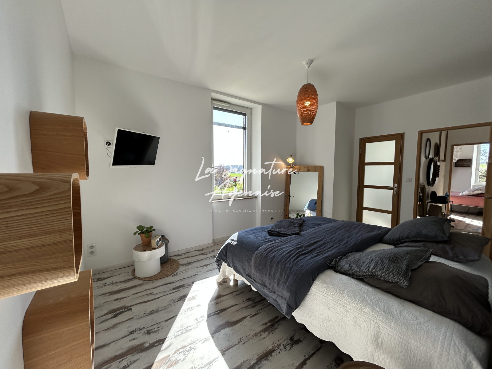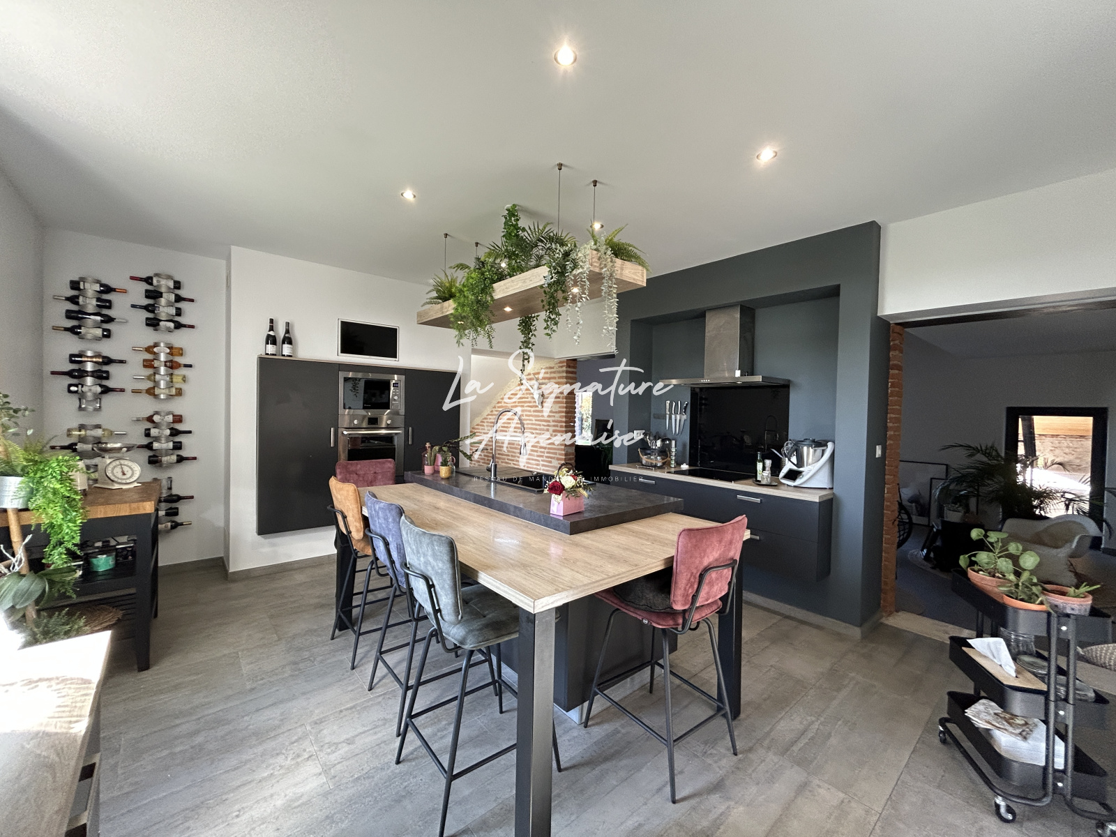 Celle-ci se compose au rez de chaussée d'une superbe entrée desservant une cuisine entièrement équipée, un vaste salon séjour de 50 m2 avec plafond cathédrale avec accès à un mezzanine et un bureau, une chambre, un wc et une buanderie, . A l'étage deux très grandes suites parentales avec chacune sa salle d'eau, son dressing et son wc. Egalement au rez de chaussée, un appartement de plus de 80 M2 que l'on peut aisément faire correspondre avec la maison pour un plus grand besoin de chambres, ou garder en airbnb. Concernant l'extérieur de la maison vous trouverez une terrasse donnant directement sur le salon et une terrasse couverte de plus de 100 m2 avec son bar et son barbecue. La piscine vous propose une vue exceptionnelle. le terrain est plat et cloturé. Pour compléter cette maison un double garage de 100 m2 avec mezzanine de rangement.