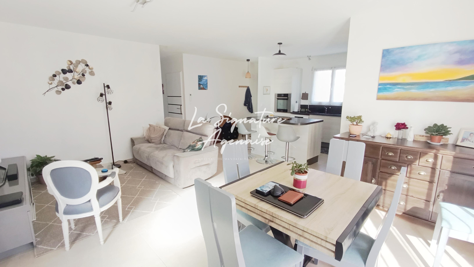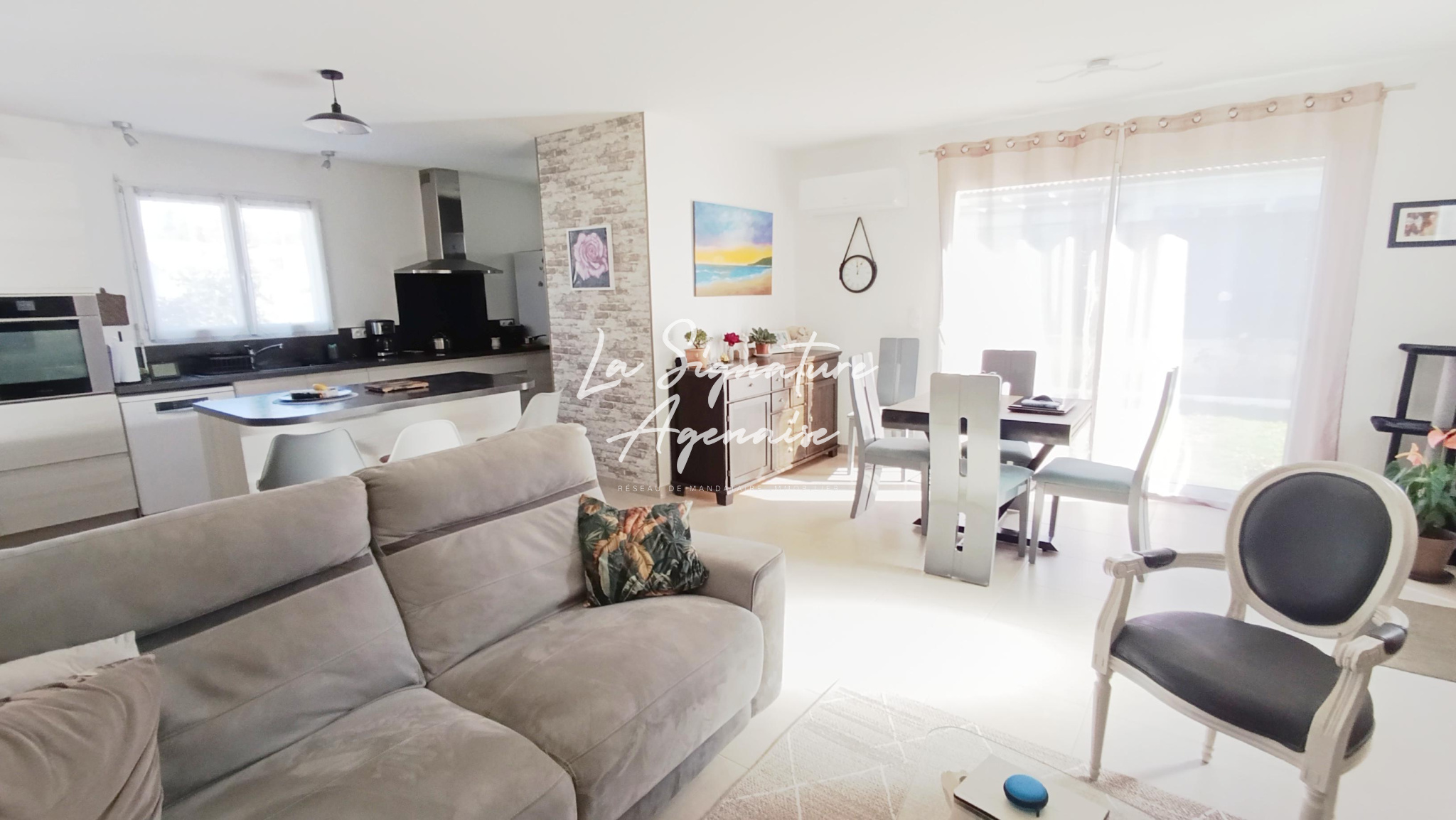 L'entrée dessert une cuisine équipée ouverte sur une lumineuse pièce de vie de 40 m2, idéal pour recevoir famille et amis.