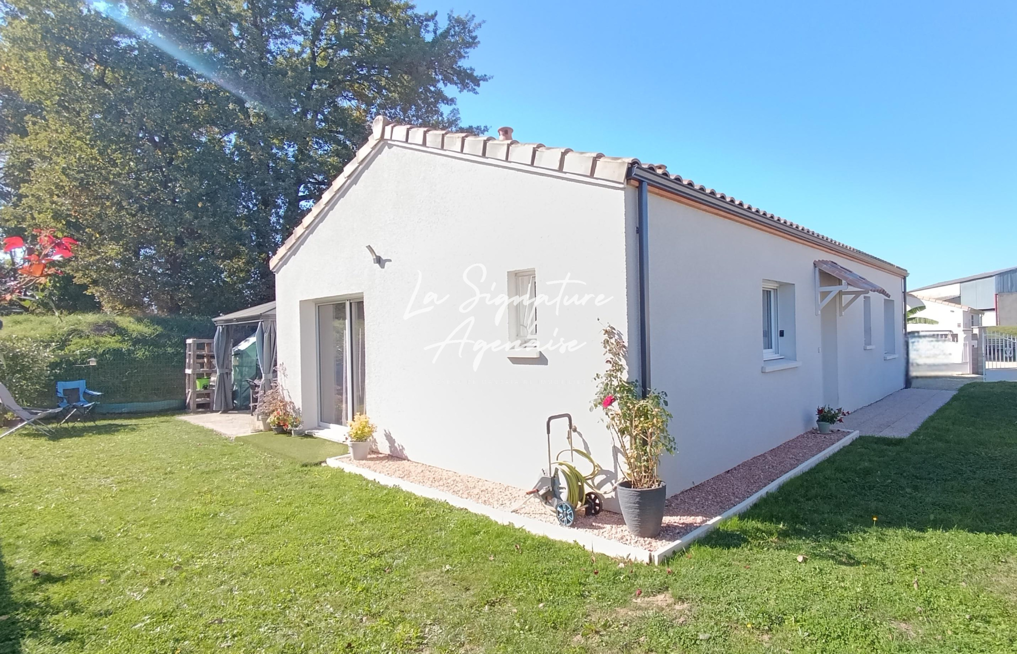 Construite en 2020, sous garantie décennale, à 10 minutes de Sérignac-sur-Garonne, à Feugarolles, elle vous offre tout le confort du moderne sur 80 m2.