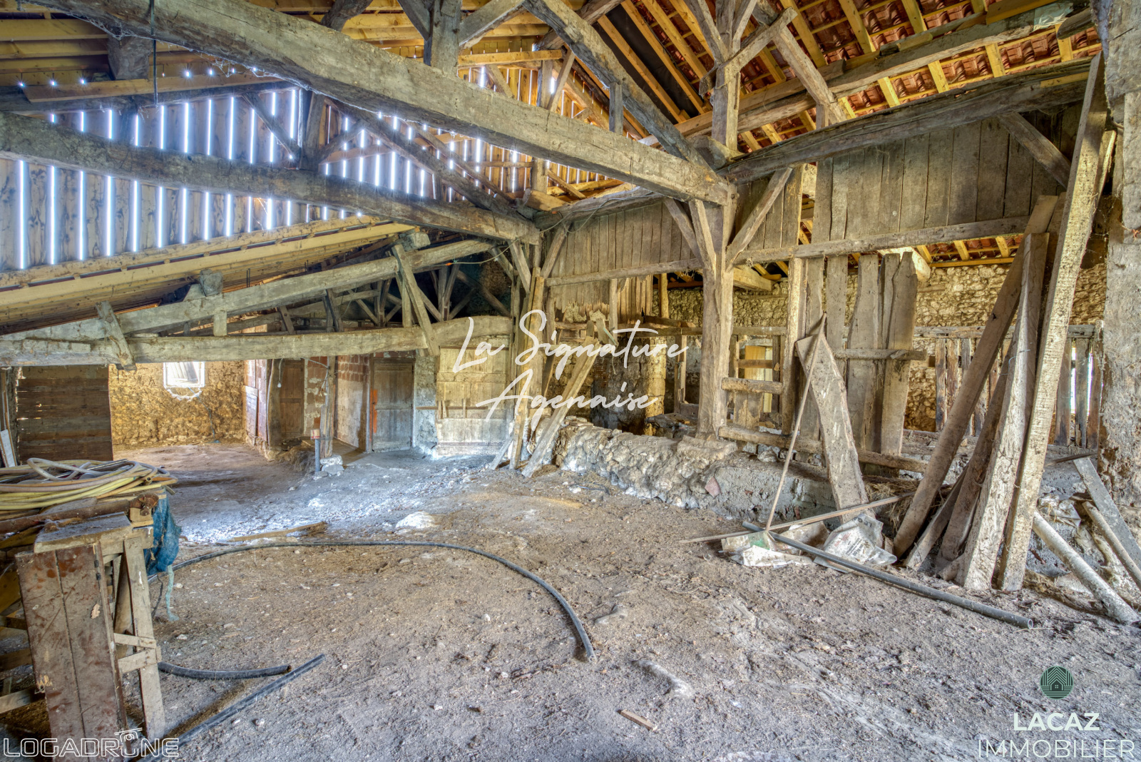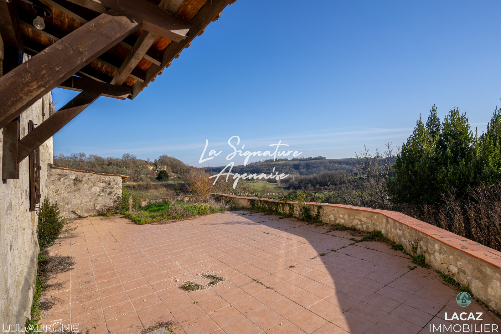 A 20 minutes d’Agen, ancienne ferme sur 3 hectares (18hectares possibles). Au bout d’un chemin privé, venez découvrir ce magnifique lieu avec une vue imprenable. Vous y trouvez la maison principale d’environ 150 m² sur deux niveaux à rénover, avec sa grande terrasse et sa grange attenante d’environ 220 m². Vous pourrez aussi apprécier une dépendance d’environ 120 m². Les parcelles sont constituées de prairies et de bois. Son emplacement géographique (10 minutes de Prayssas avec tous les commerces de proximité) son environnement naturel et ses beaux volumes promettent un beau potentiel (milieu équestre, gîte, artisanat) A découvrir sans tarder.